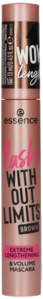 Brown - az essence lash without limits extreme lengthening & volume mascara innovatív és rugalmas elasztomer keféje eléri a legrövidebb szempillákat is az ultrahosszú és dúsabb szempillákért! szemészetileg is tesztelt, és a kontaktlencse-viselők számára is alkalmas.