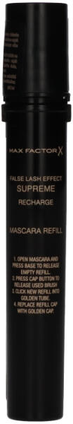 Íme a false lash effect supreme újratölthető szempillaspirál, az első max factor szempillaspirál, amely utántölthető. Azonnal 7x nagyobb volument biztosít, és 4 hét alatt egészségesebbnek tűnő szempillákat eredményez. A supreme szempillaspirál egyedi sörtékkel ellátott kefével rendelkezik, amely minden szempillát bevon a nagy volumen érdekében, keratinban gazdag formulával kombinálva. High-tech, újratölthető kivitelben kapható a végtelen használat érdekében. Feltöltés, újratöltés, ismétlés! a drámai műszempilla hatás érdekében a szempillaspirál kefe hegyével érd el a szempillák belső sarkát, majd a kefe testével hosszabbítsd meg a középső szempillákat. Hogyan kell feltölteni: nyisd ki a szempillaspirált és nyomja meg a tubus alját az üres utántöltő kioldásához, majd nyomjd meg a tubus kupakján a gombot a használt kefe kioldásához. Helyezd a tubusba az új utántöltőt, majd tedd vissza tubus kupakját.